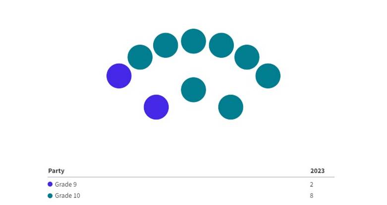 A visual representation of the membership of the council (Note that, in this case, the “Party” label is actually representing the grade, not student council party affiliation)